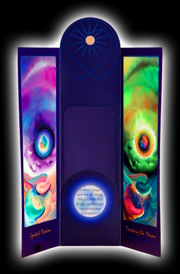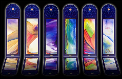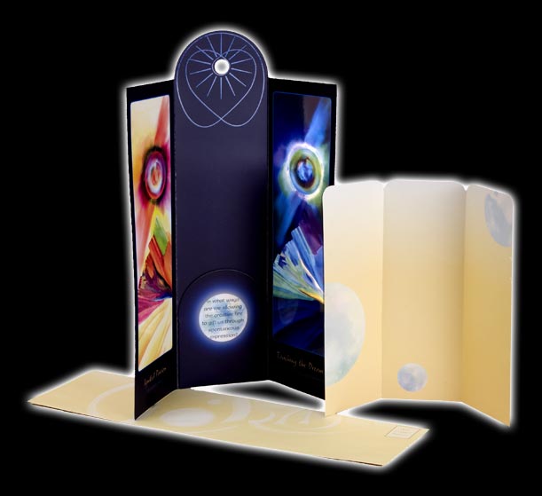 Like multifaceted gems, the Feng Shui Altar Card Collection awakens and releases blessings, in our self and our world. Choose from 6 activating cards, our Worlds of Good Fortune signature card, the Element of Love, and the five Feng Shui elements, Earth Metal Water Wood Fire. With clear intention, placing an altar card on your desk or personal altar at home or office enhances creativity, harmony and effortless flow.