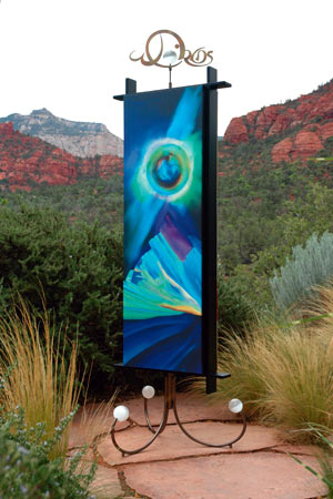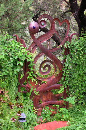 This garden gate is inspired by the mairrage of two feng shiu elements: wood and metal.